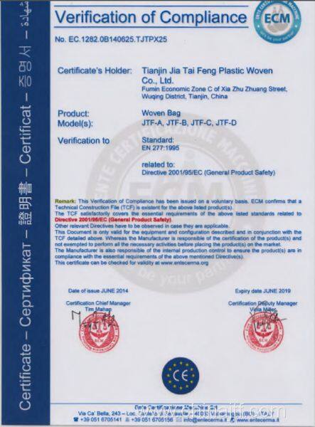 Tianjin Jia Tai Feng Plastic Woven Co., Ltd. is a professional plastic woven bag manufacturer. We focused on packaging field over 30 years. Our bags are popular in Asian ,Europe and Middle East market for the high-quality and reasonable price.We imported a most advanced block-bottom bag production line from Europe in 2015. Our New Style Block-bottom Bags are used mostly for fertilizer, feed, seeds and pet food packaging .They are much more durable and cheaper than paper bags. The inner and outer layers are both polypropylene (pp) material ,and can be recycled. We also passed the European CE Certificate. Our company constantly keep leading level in production technology and high quality.Our factory located in Wuqing Development Zones in Tianjin city which is 80 kilometers away from Xingang Port Tianjin , and 80 kilometers from Beijing airport . Transportation by sea, by land or by air are all very convenient.